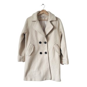 Abrigo grueso semi formal,  Tela: paño grueso con forro interno. Color Beige crema.  (El servicio de lavandería esta incluido) botonería