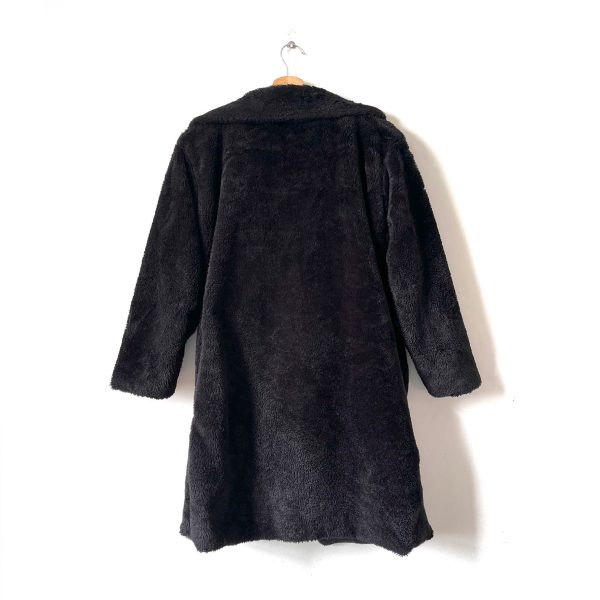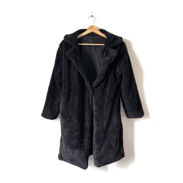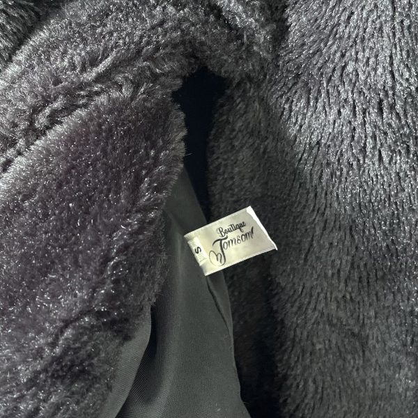 Abrigo en peluche, semi formal, Tela: tipo piel de conejo, con forro interno. Color Negro. (El servicio de lavandería esta incluido)