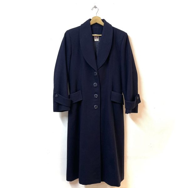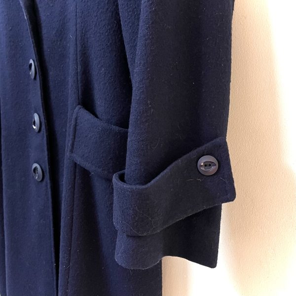 Maxi abrigo. Tela en paño grueso. Color azul noche. Cuello imperio. Tiene forro interno sencillo. (El servicio de lavandería esta incluido)