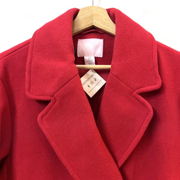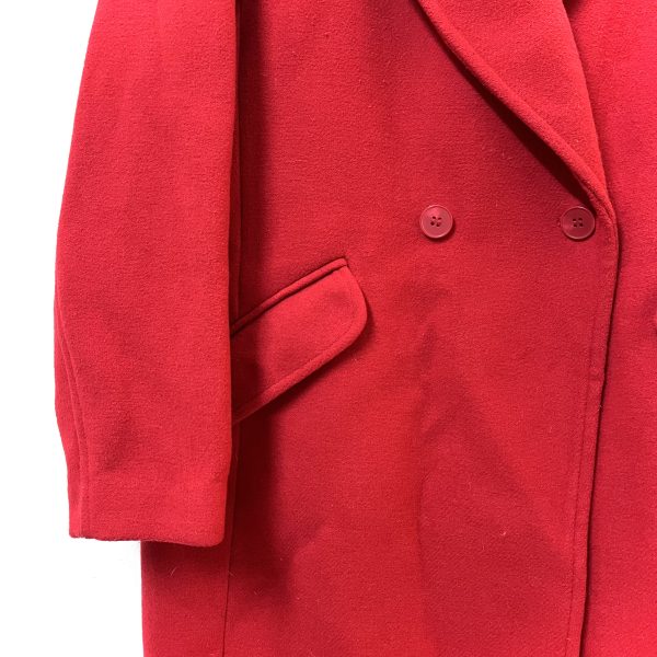 Maxi abrigo. Tela en paño semi grueso. Color rojo clasico. Tiene forro interno sencillo. La marquilla dice XS pero es oversize asi que puede llegar a quedar a una talla M (El servicio de lavandería esta incluido)