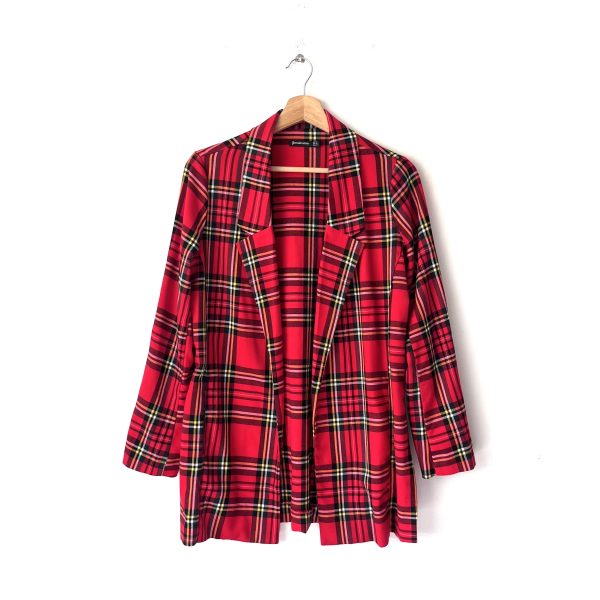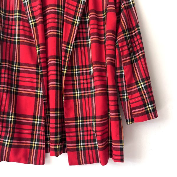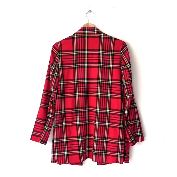 Blazer casual en cuadros tartán clásico. Estilo abierto, tiene listones en las mangas para recogerlas y que quede 3/4. Tela tipo sarga suave y fluida, parte de la composición en en viscosa. (El servicio de lavandería esta incluido)
