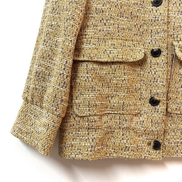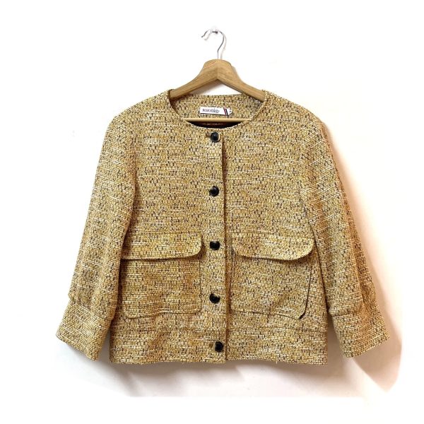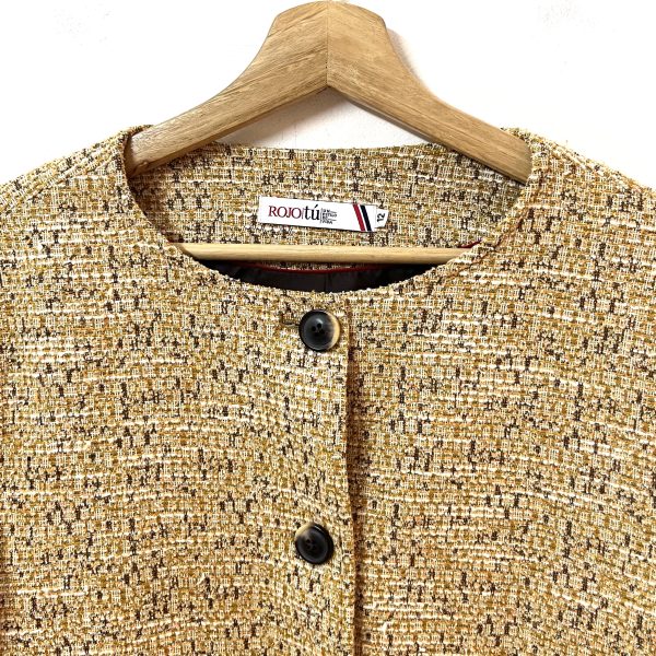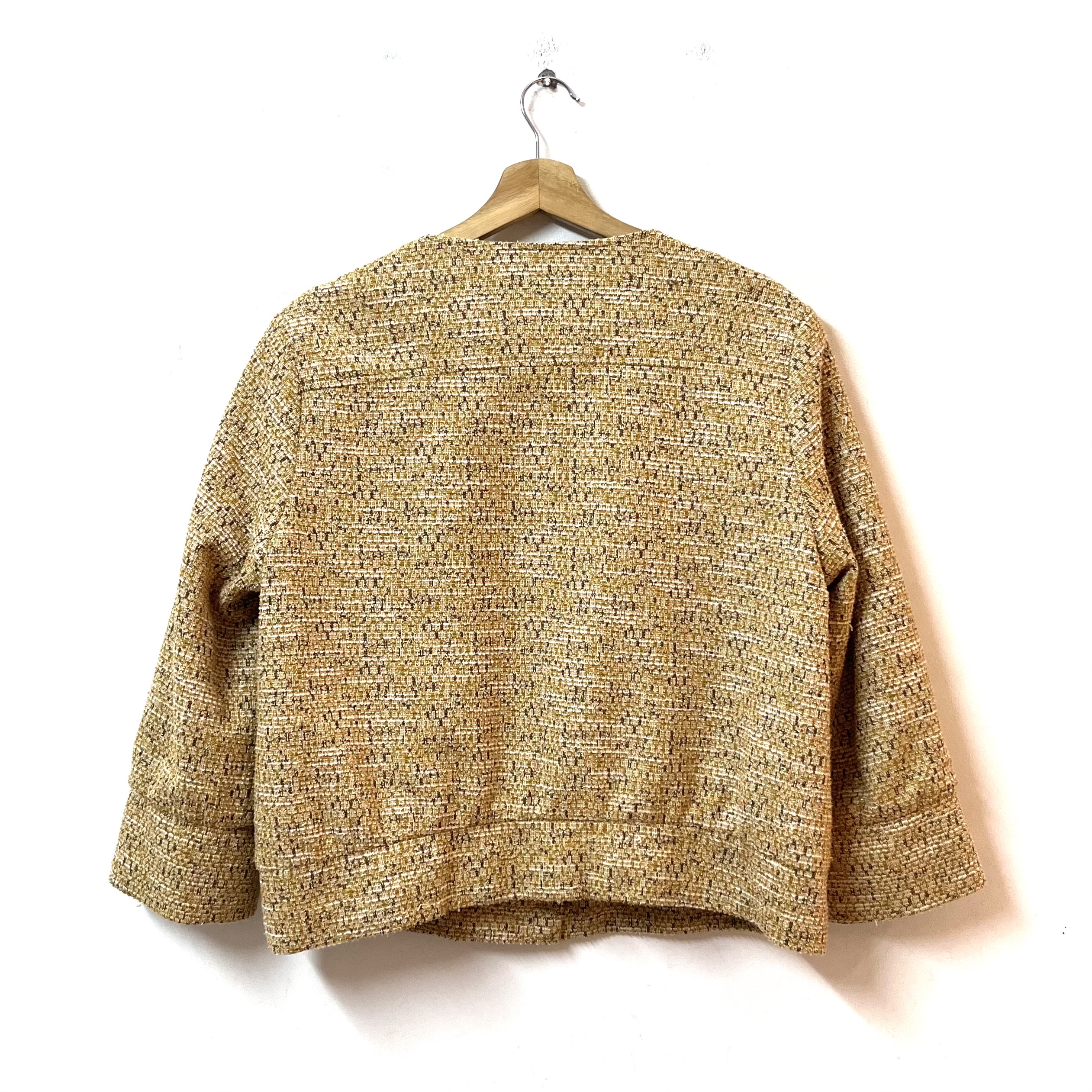 Chaqueta estilo channel. Tejido en punto. Color amarillo con detalles en café. (El servicio de lavandería esta incluido)