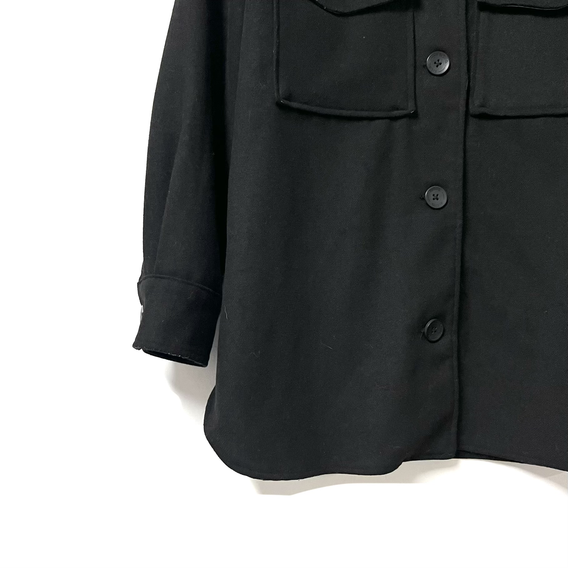 Sobre camisa. Color negra. Tela en paño semi grueso. Botones completos .