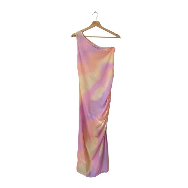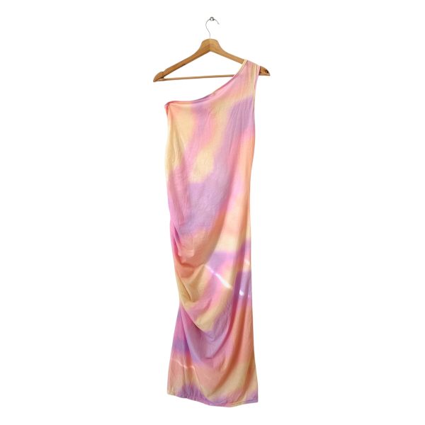 Vestido asimétrico con efecto V de unicornio. Tela: Algodón licrado. Talla M promedio.